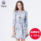 季候风2017春季女装新品复古几何图收腰衬衫式连衣裙女