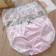 外贸原单出口日本白色浅蓝色小清新中腰包臀蕾丝边纯棉大码女内裤