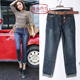雨艾浓2017秋款牛仔裤九分裤时尚高腰裤大码女裤子修身8206休闲