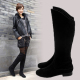 2017秋冬新款 简约时尚优雅靴子反毛皮女靴平跟高筒女靴女鞋包邮