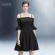 欧贝欧 2017春装优雅气质连衣裙女一字领收腰短裙漏肩宴会小黑裙