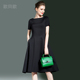 欧贝欧 2017新款赫本复古小黑裙简约收腰a字摆短袖宴会礼服连衣裙