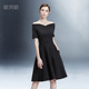 欧贝欧 2017新款女装连衣裙一字领OL时尚气质中长款黑裙小黑裙