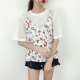 2017夏季新款韩版白色短袖t恤+小吊带两件套上衣碎花雪纺衫套装女