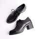 春秋款 复古圆头舒适粗跟单鞋 真皮牛皮系带学院风通勤女鞋高跟鞋