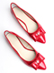 欧美新款单鞋 蝴蝶结甜美浅口尖头鞋 内增高真皮平底女鞋红色婚鞋