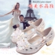 女童凉鞋2017夏季新款真皮包头女童水晶公主舞台高跟鞋26-38码