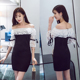 夏季新款韩系时尚性感一字领露肩上衣+波浪裙摆短裙子两件套装女