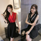 夜店女装性感气质女短裙2017夏季新款V领拼色收腰无袖大摆连衣裙