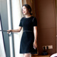 2017春季新款韩版显瘦修身短袖针织连衣裙小香风中长款裙子女百搭