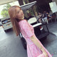 「瓶子家」2017秋季款冰丝中长款修身显瘦包臀开叉针织短袖连衣裙