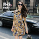 2017春装新款高端真丝连衣裙复古优雅印花100%桑蚕丝女短款a字裙