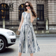 真丝连衣裙2017夏新款桑蚕丝高端七分袖修身显瘦印花a字中长裙女