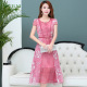 2016新款夏装女雪纺连衣裙韩版修身显瘦中长款短袖拼接印花裙子