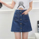 韩版牛仔裙女 夏排扣高腰显瘦包臀牛仔半身裙a字裙蓝色牛仔短裙女