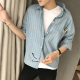 夏装港风条纹男士五分袖衬衫宽松半袖衬衣文艺青少年休闲短袖衬衫