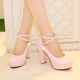 韩版防水台圆头女鞋子时尚高跟鞋欧美新款粗跟浅口鞋大码小码单鞋