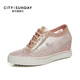 CITYSUNDAY都市星期天女鞋 新款休闲鞋女系带蕾丝网纱透气女板鞋