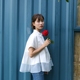 自留欧根纱拼接A字短袖A衬衫女上衣娃娃衫春夏打底白衬衣翻领显瘦