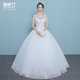 2017春夏新款婚纱礼服韩式一字肩齐地新娘结婚长袖蕾丝婚纱蓬蓬裙