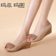 玛菲玛图鞋子女夏鱼嘴鞋平底鞋蝴蝶结浅口坡跟单鞋真皮中跟妈妈鞋
