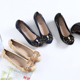 春款女鞋真皮浅口坡跟单鞋女平底鞋蝴蝶结圆头中跟大小码妈妈鞋