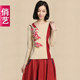 俏艺 春秋新款 民族风七分袖亚麻盘扣修身刺绣系带衬衫女 3170