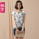俏艺 夏装新款深V领 中国风水彩印花棉短袖修身个性t恤女上衣2017