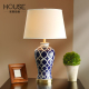 豪斯景德镇田园新中式客厅卧室床头蓝色花瓶手绘台灯 美式陶瓷台