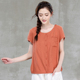 2017夏装新款斯琴风格女装褶皱麻文艺大码宽松百搭棉麻短袖衬衫女