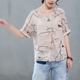 包邮!斯琴风格2017夏装印花文艺立领套头宽松百搭棉麻短袖 女T恤