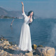海边度假复古文艺荷叶边雪纺超大摆拖地连衣裙五分袖仙女神长裙夏