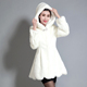 秋冬新款女中长款高腰A字裙摆兔毛皮草 连帽白色皮草外套