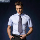 修身短袖衬衫TUONO轻奢纯棉免烫青年蓝色纯色职业男士短袖衬衣
