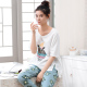 韩版少女士夏季纯棉短袖长裤睡衣甜美可爱全棉质可外穿家居服套装