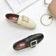 新款方扣牛皮休闲平底鞋踩脚两穿懒人鞋真皮大底低跟女单鞋乐福