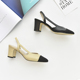 messeca春夏拼色浅口小香风单鞋方头真皮百搭双色粗跟包头凉鞋女