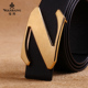 新款曼邦男士皮带真皮自动扣韩版腰带男青年休闲百搭牛皮商务裤带