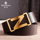 曼邦平滑扣男士皮带真皮头层牛皮Z字扣腰带男商务百搭裤带韩版潮
