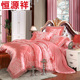 恒源祥家纺双面天丝四件套纯色素色双拼床单被套1.8cm2.0cm双人床