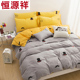 恒源祥家纺纯棉被套床上四件套全棉 型纽扣式纯色磨毛四件套床品