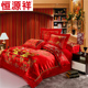恒源祥家纺全棉磨毛婚庆四件套大红新婚床品纯棉结婚1.8m双人卡通