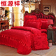 恒源祥全棉婚庆四件套1.8m床单2.0大红纯棉结婚床品六件套床盖