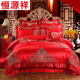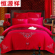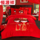 恒源祥婚庆四件套床盖结婚大红刺绣提花新婚套件4件套六件套