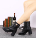 3515强人正品秋冬女鞋真皮羊毛英伦马丁靴粗跟高短靴鞋女靴子棉靴