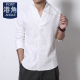 港角 中国风中式唐装青年汉服改良衬衫男长袖宽松居士禅服加大码