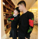 2015秋冬新款韩版加绒男女情侣T恤民族风玫瑰花刺绣打底衫上衣潮