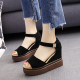 高跟凉鞋女夏2017新款韩版百搭坡跟鞋防水台磨砂皮厚底真皮鱼嘴鞋