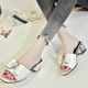 2017新款粗跟甜美蝴蝶结凉拖鞋女夏季水钻外穿一字鞋中跟简约女鞋