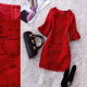 2017春夏新款白富美短袖a连衣裙修身气质旗袍复古名媛风花朵蕾丝